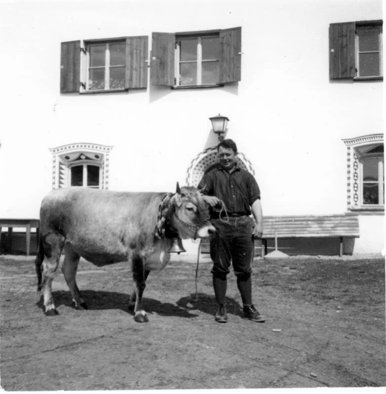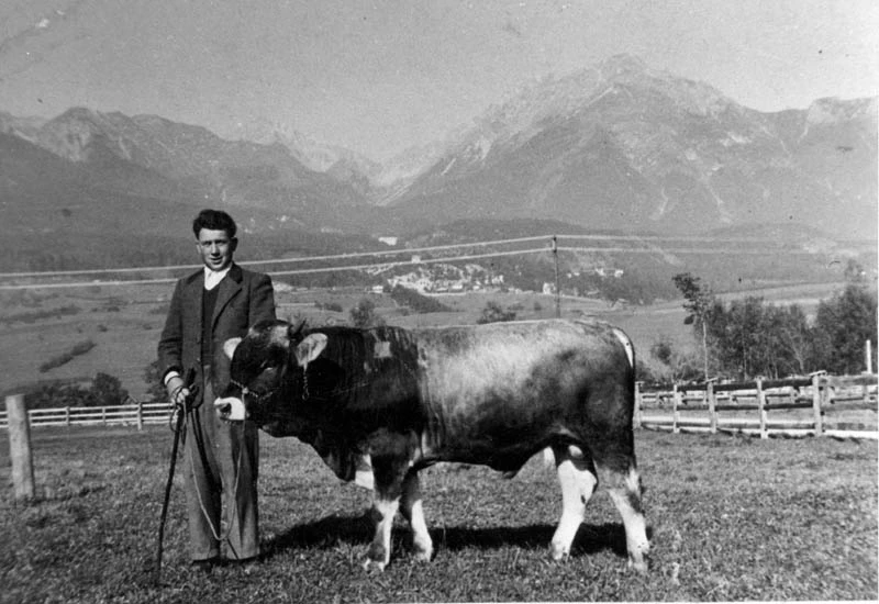 Großvater Josef Greiter wurde 1893 geboren und hatte, wie viele Tiroler Bergbauernkinder, das Schicksal eines Schwabenkindes. Bereits mit 12 Jahren musste er von März bis November als Hofhelfer ins Schwäbische. Nach der Rückkehr aus dem 1. Weltkrieg übernahm er einen Teil der elterlichen Landwirtschaft. Ungefähr 4-5 Kühe, Jungrinder und Hoaler (Ochsen) standen im Stall – zusammen an die 10-15 Stück. Auch der Ackerbau spielte für die Versorgung der Familie mit Lebensmitteln eine bedeutende Rolle.