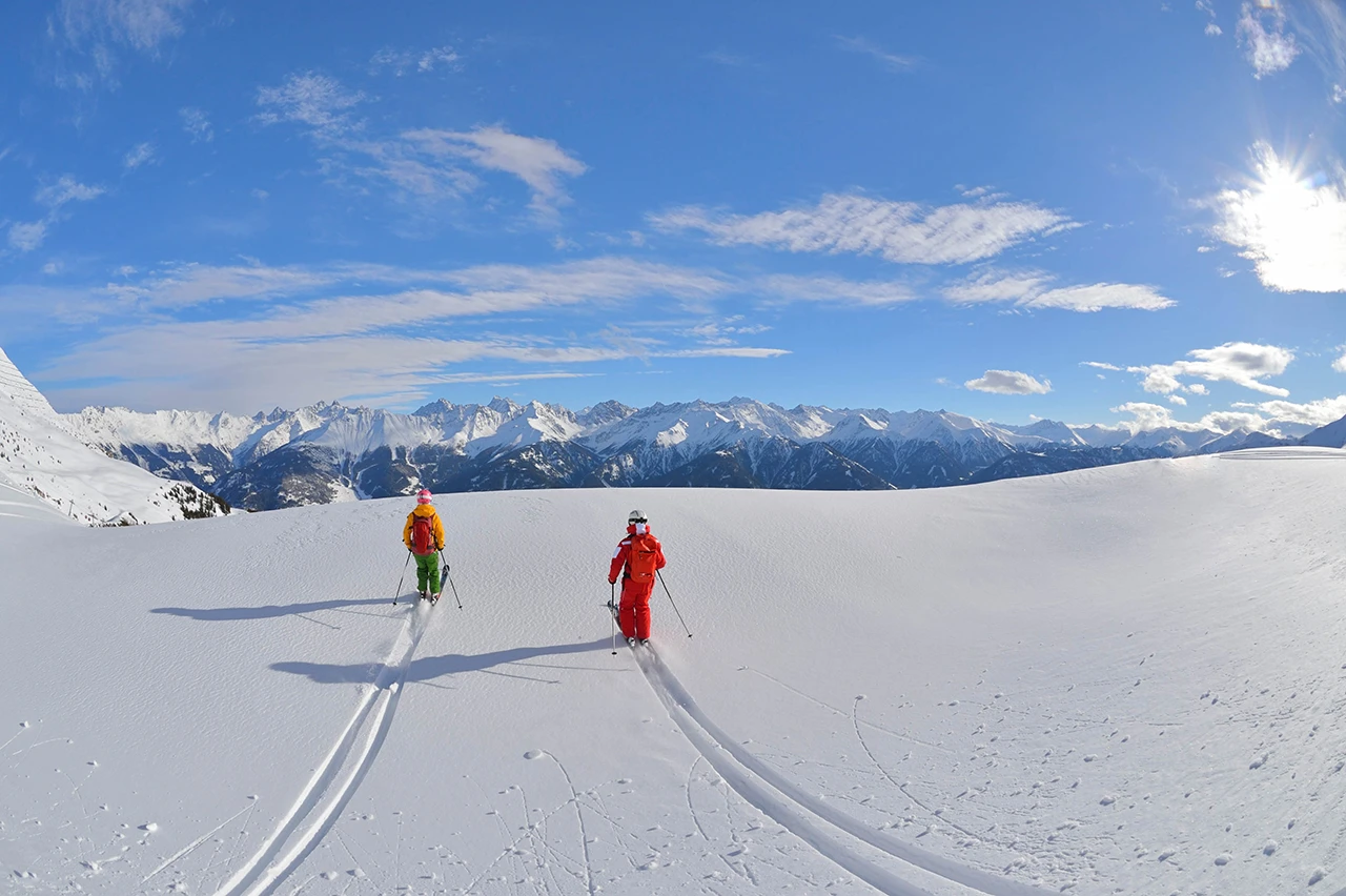 Ziehen Sie bei einer Skitour in Serfaus-Fiss-Ladis Ihre Spuren im unberührten Schnee und bestaunen Sie das unberührte Weiß in tausend verschiedenen Tönen.