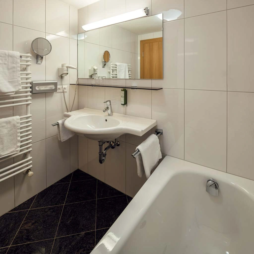 - 2 Badezimmer mit Haarföhn & Kosmetikspiegel (1x mit Badewanne, 1x mit Dusche/WC)