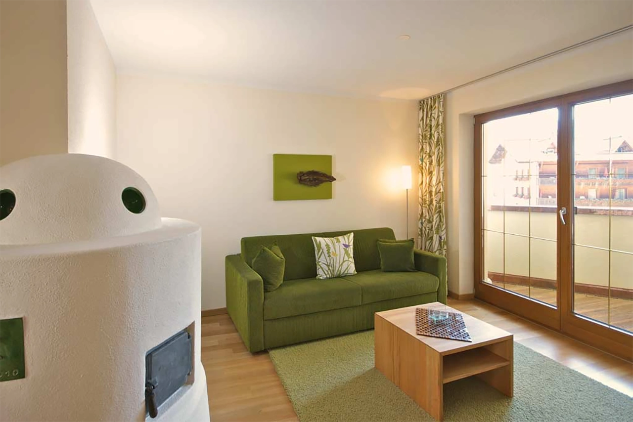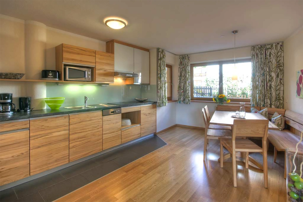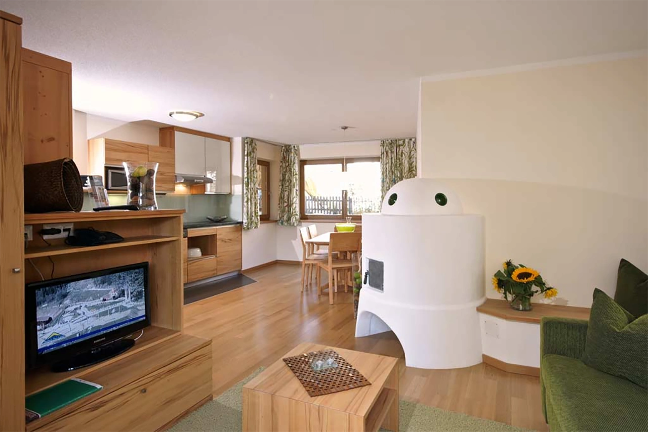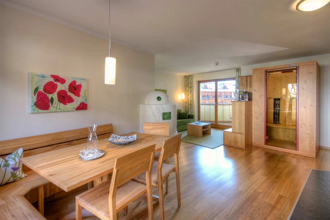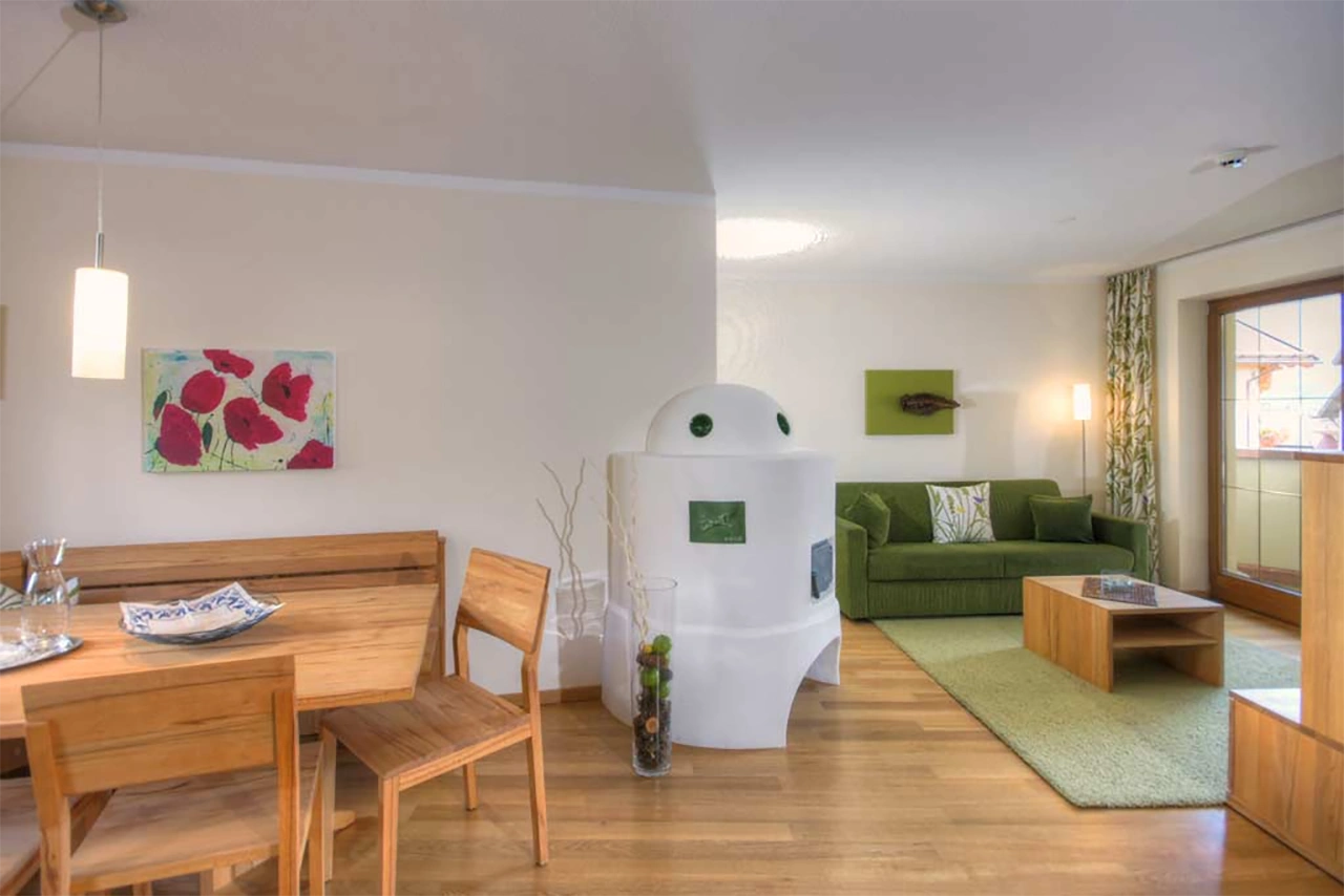 Mistel und Silberdistel sind mit 2 Balkonen, 2 Schlafzimmern, Physiotherm-Infrarotkabine, Wohnküche, Essecke, Wohnbereich und Tiroler Ofen perfekt ausgestattet.