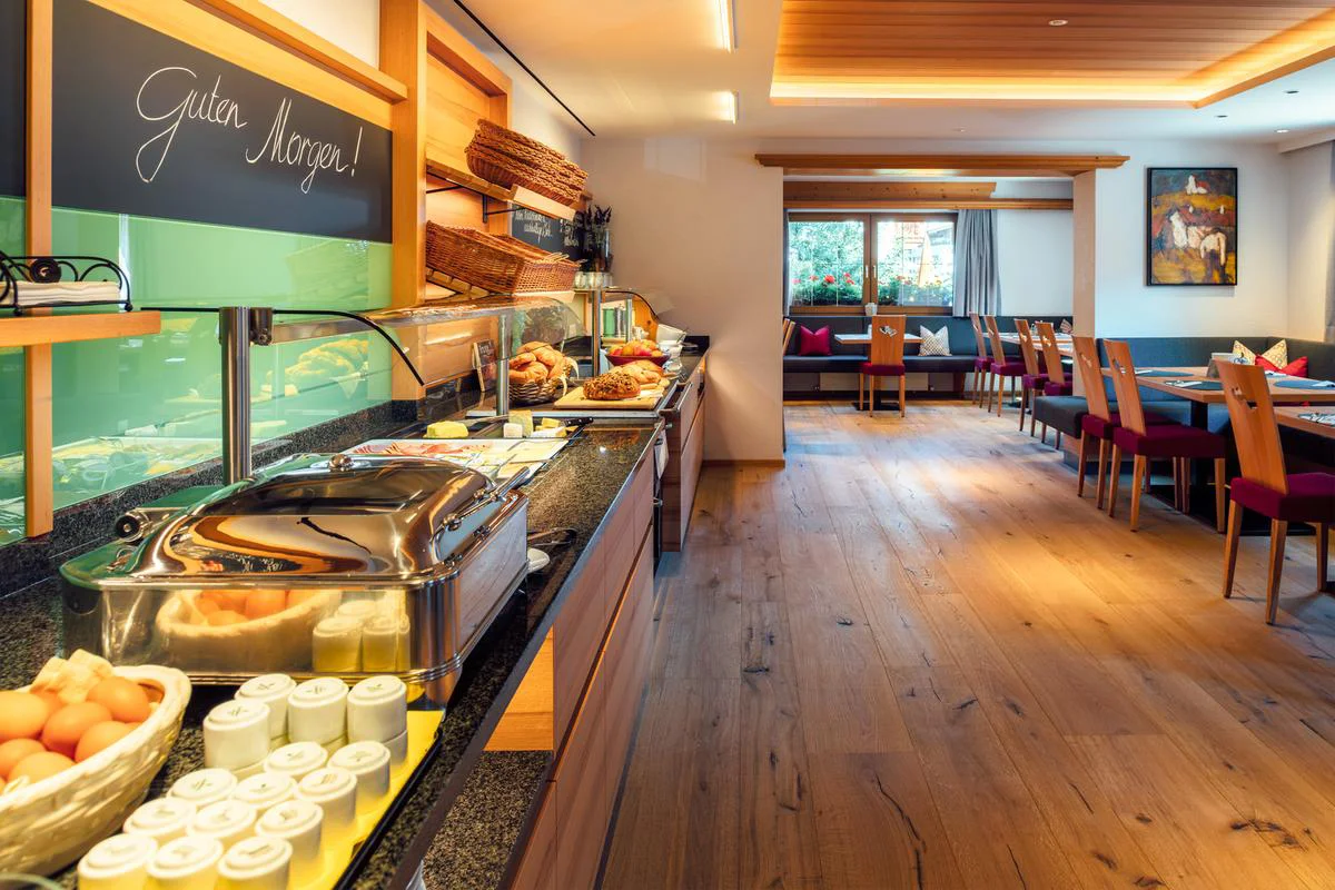 Start your day with a delicious breakfast in our bright and welcoming breakfast room featuring a generous buffet. Solid wood furniture, a spacious buffet area, and plenty of room for young and old alike are already waiting for you.